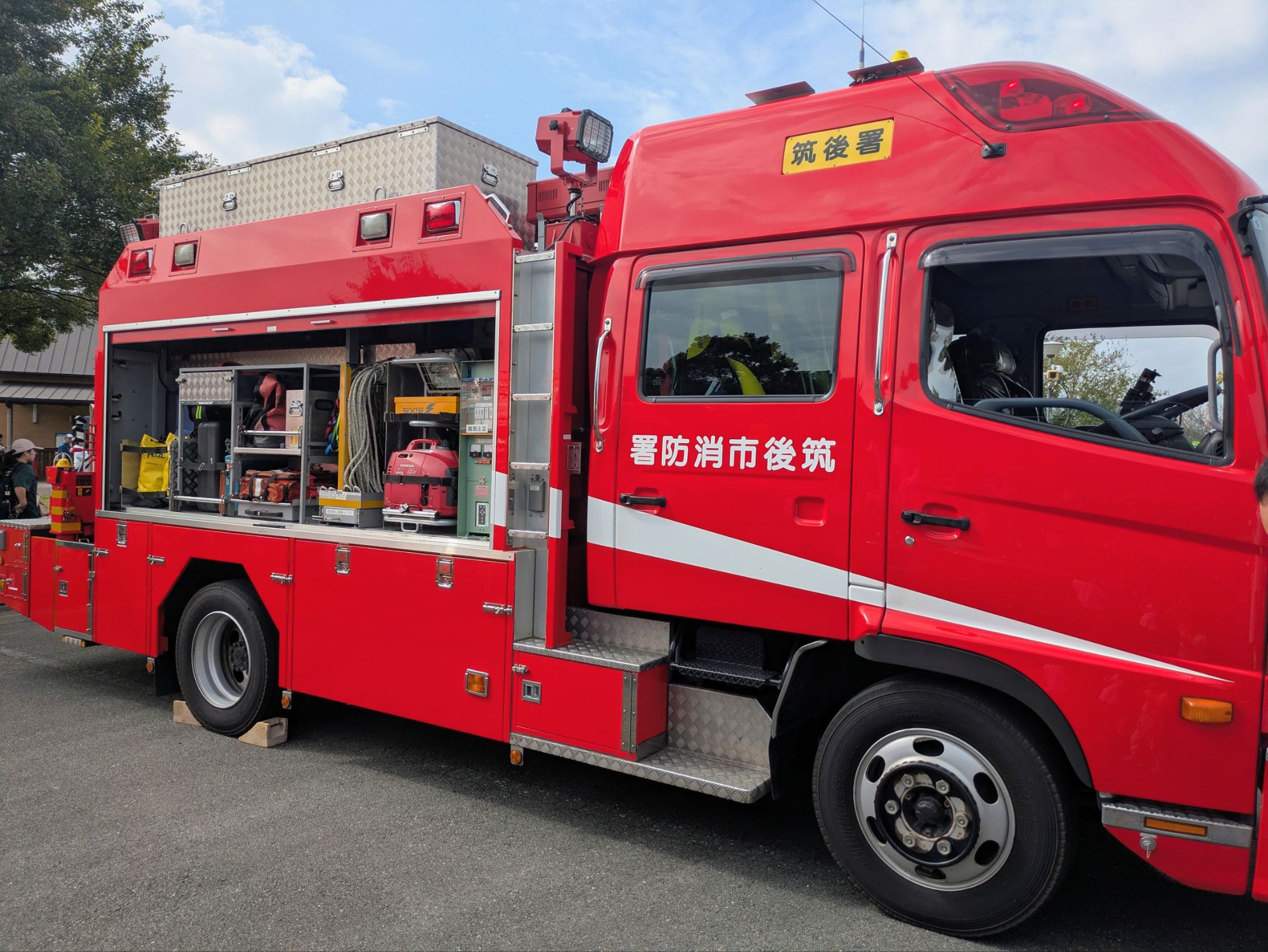公園にははしご消防車やパトカー、自衛隊の車も展示してあったので、車の中を見たりも出来ました!